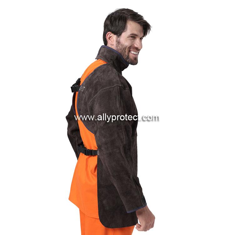 - 產(chǎn)品描述: [ AP ]炭啡色牛二層芯皮全皮護(hù)胸立領(lǐng)長袖圍裙,適于在炎熱氣溫或室內(nèi)焊接使用,背部透氣,不會感覺太炎熱。