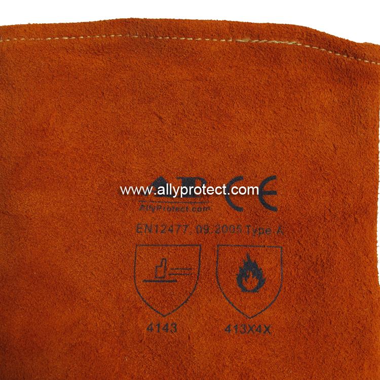 - 產(chǎn)品描述: [ AP ]銹橙色牛二層皮全皮電焊手套,直拇指護(hù)縫設(shè)計,適用于焊接、切割及搬運等用途。